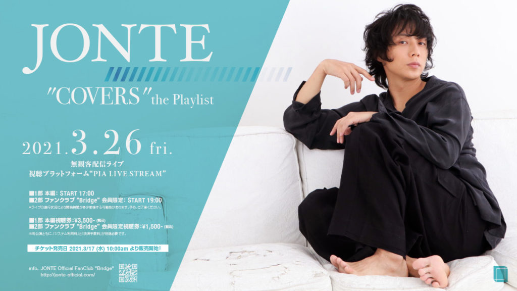 2021.3/26 (金) に開催される、無観客配信ライブ「JONTE カバーライブ “COVERS” the Playlist」のチケット情報が決定しました。
